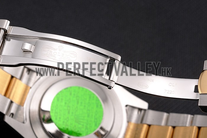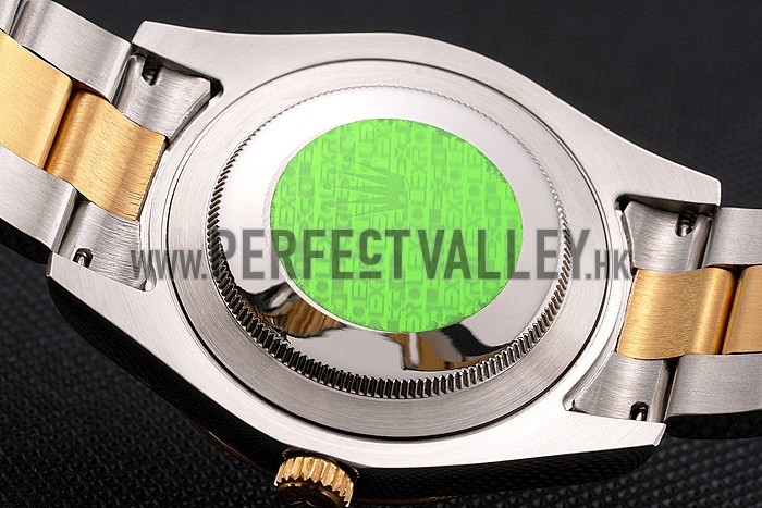 - Back: Polished stainless steel snap-in back with Rolex green authenticity sticker