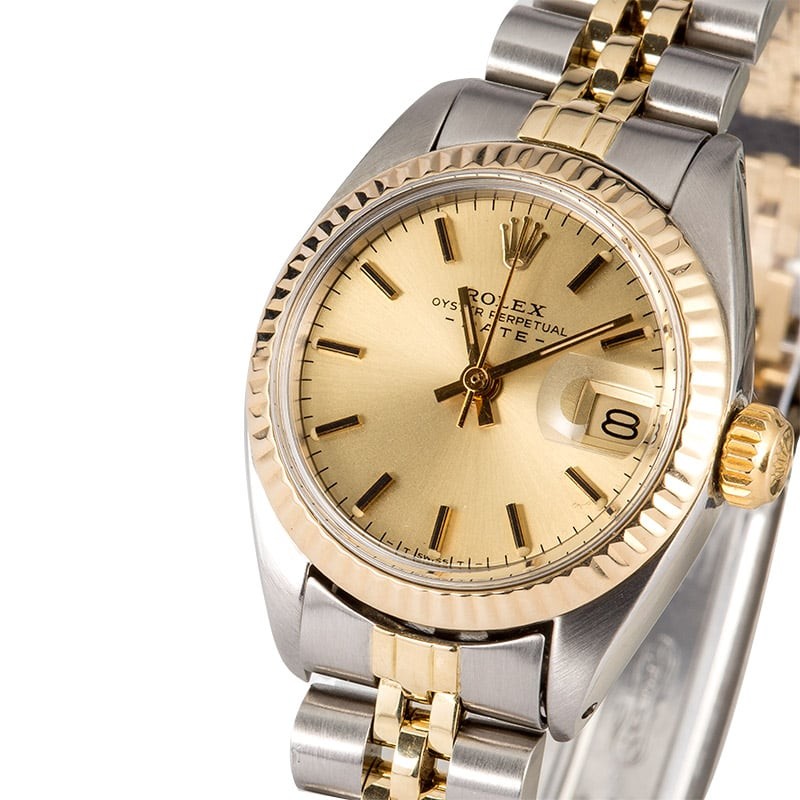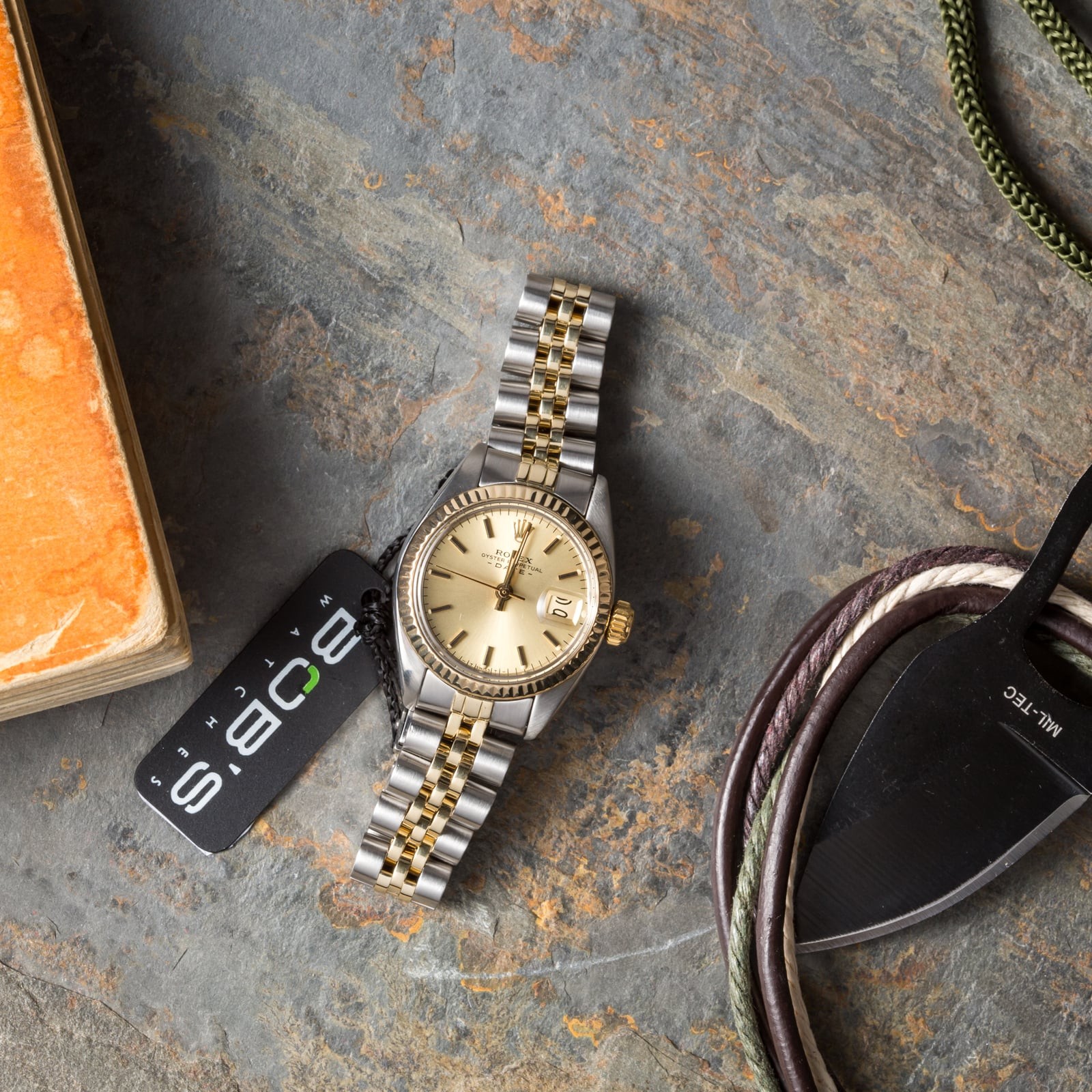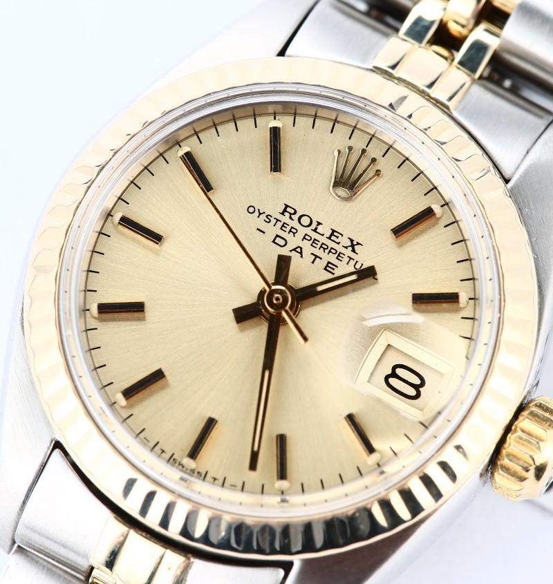- Case: Stainless steel w/ yellow gold fluted bezel (26mm)
