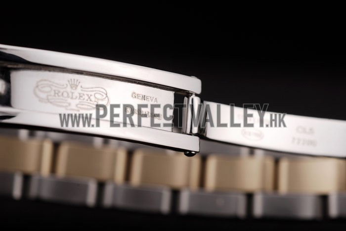 - Bracelet: 18k yellow gold and brushed stainless steel link bracelet with Rolex logo deployment clasp