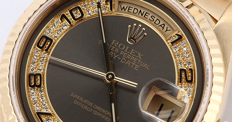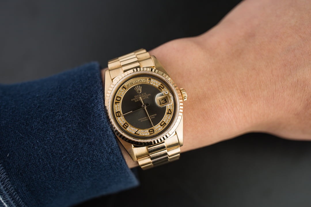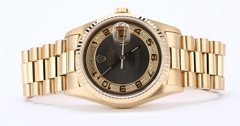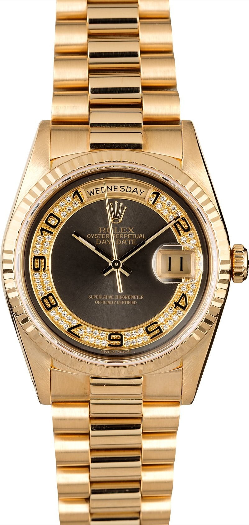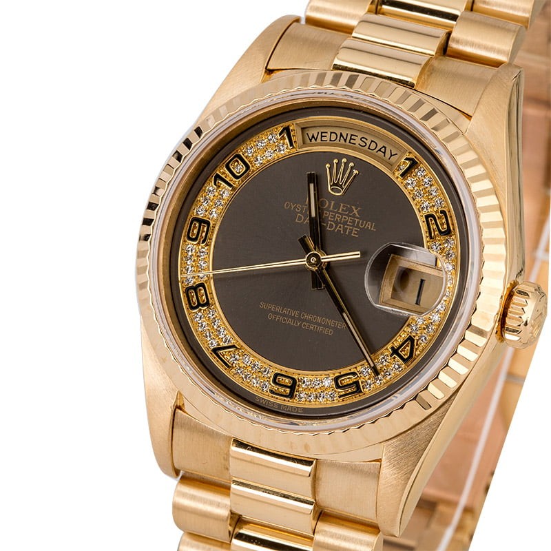 - Bracelet: 18k yellow gold Presidential w/ concealed Crownclasp