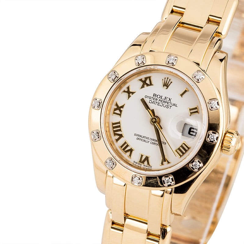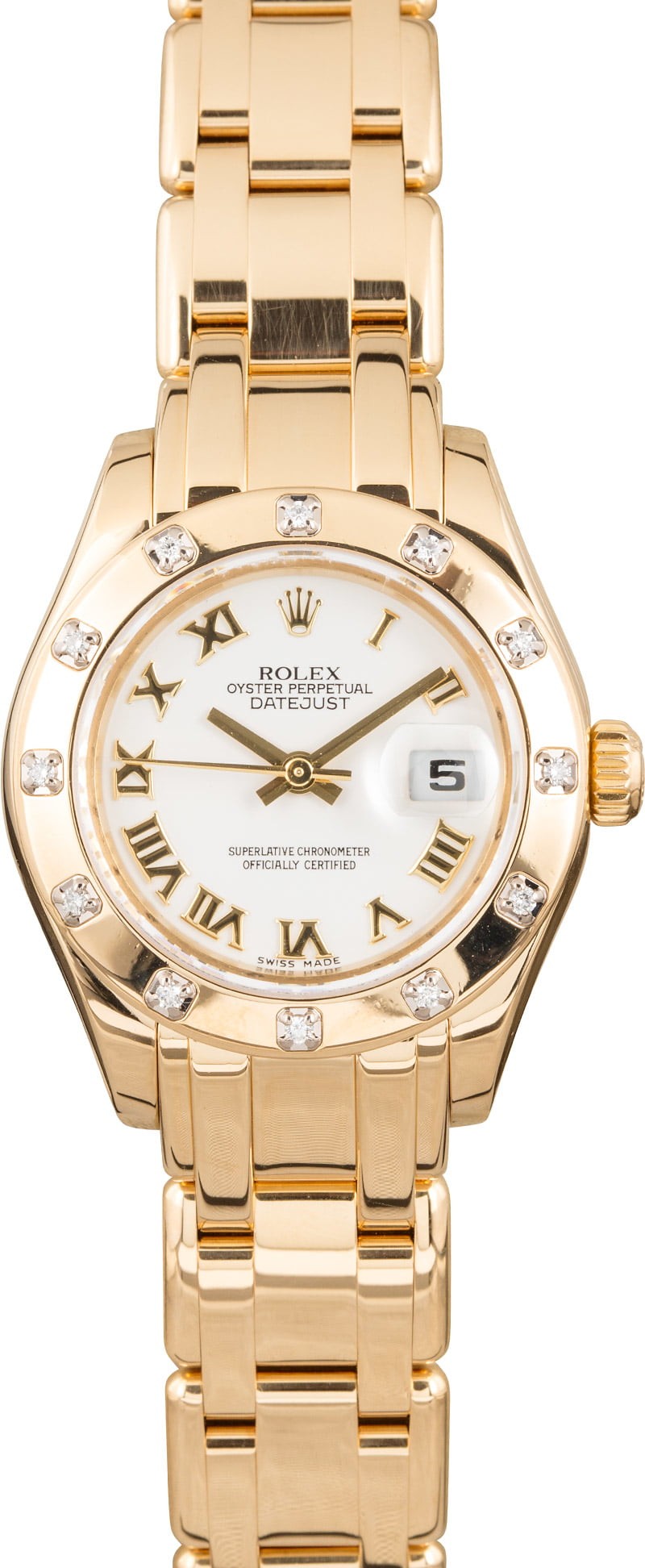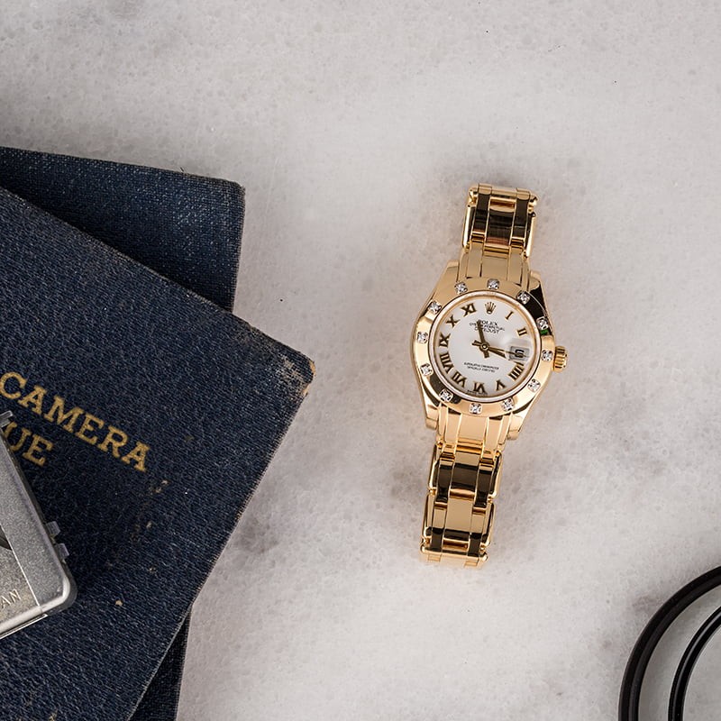 - Bracelet: 18k yellow gold Rolex Pearlmaster w/ hidden Crownclasp