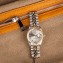 - Case: Stainless steel w/ 14k yellow gold engine turned bezel (34mm)