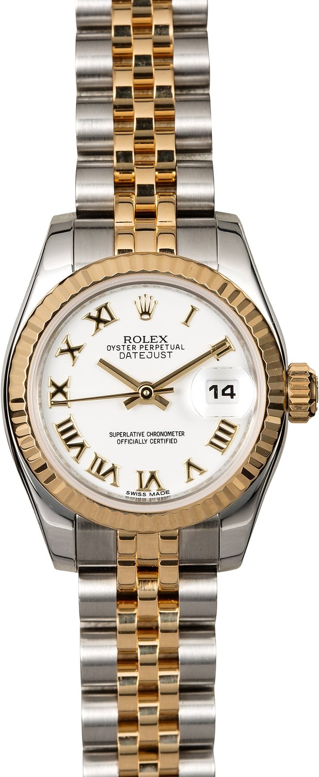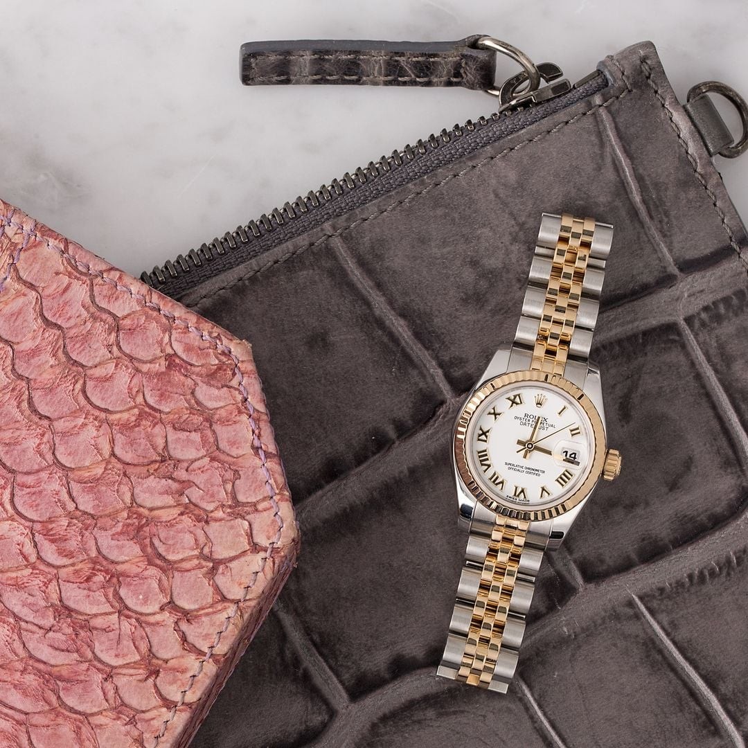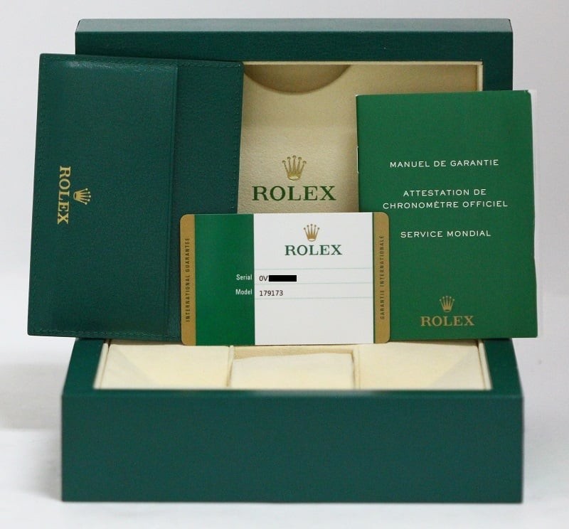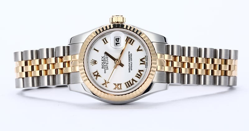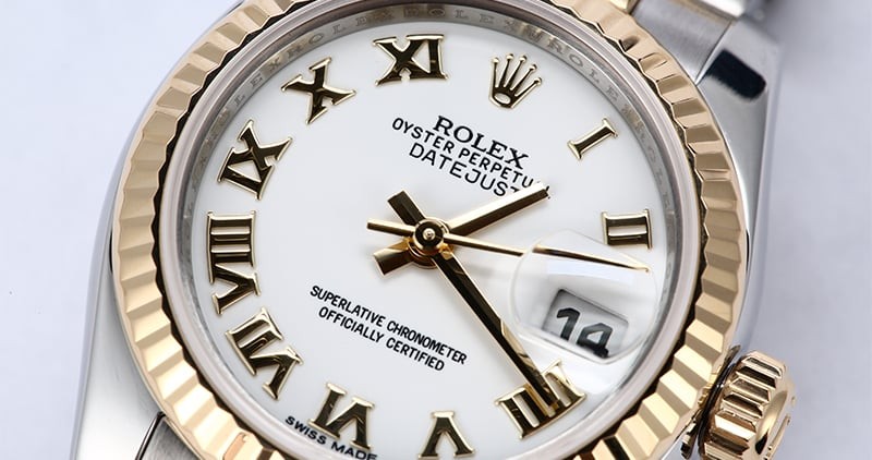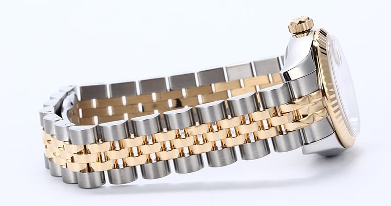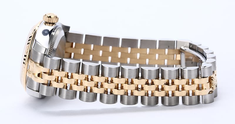 - Case: Stainless steel w/ 18k yellow gold fluted bezel (26mm)