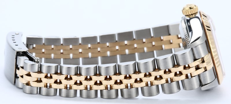 • Case: Stainless steel w/ 18k yellow gold fluted bezel (26mm)