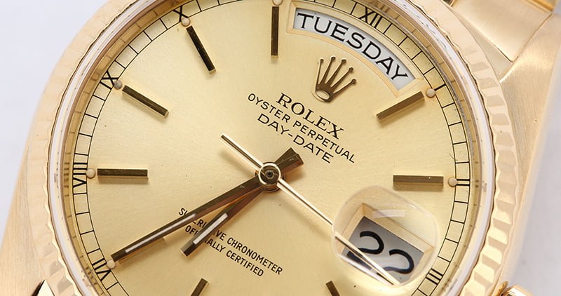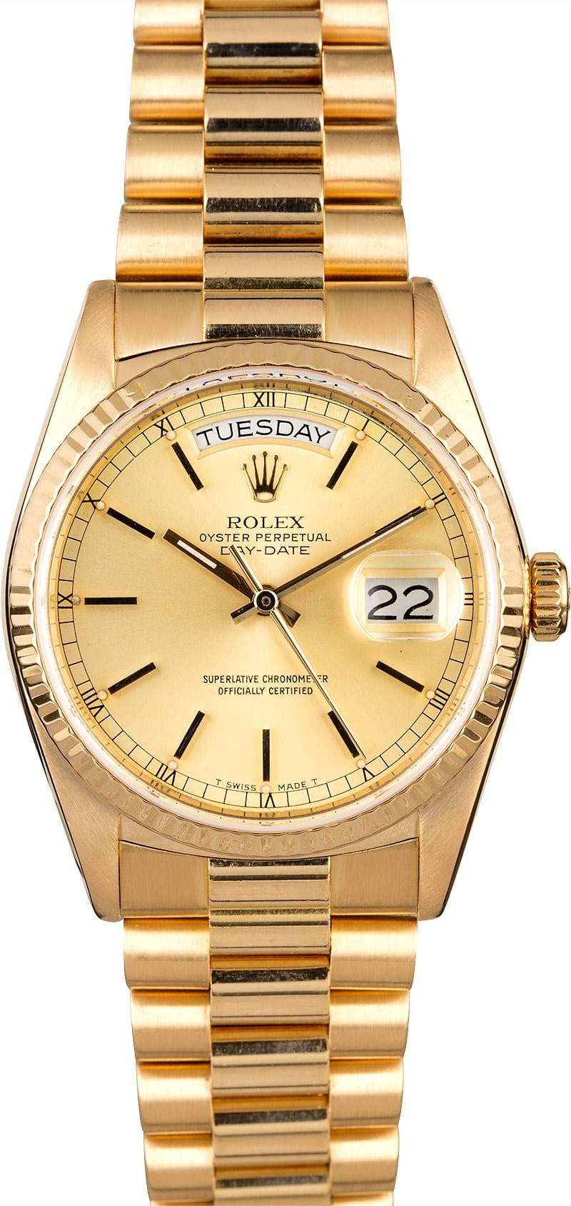 - Bracelet: 18k yellow gold Presidential w/ concealed Crownclasp