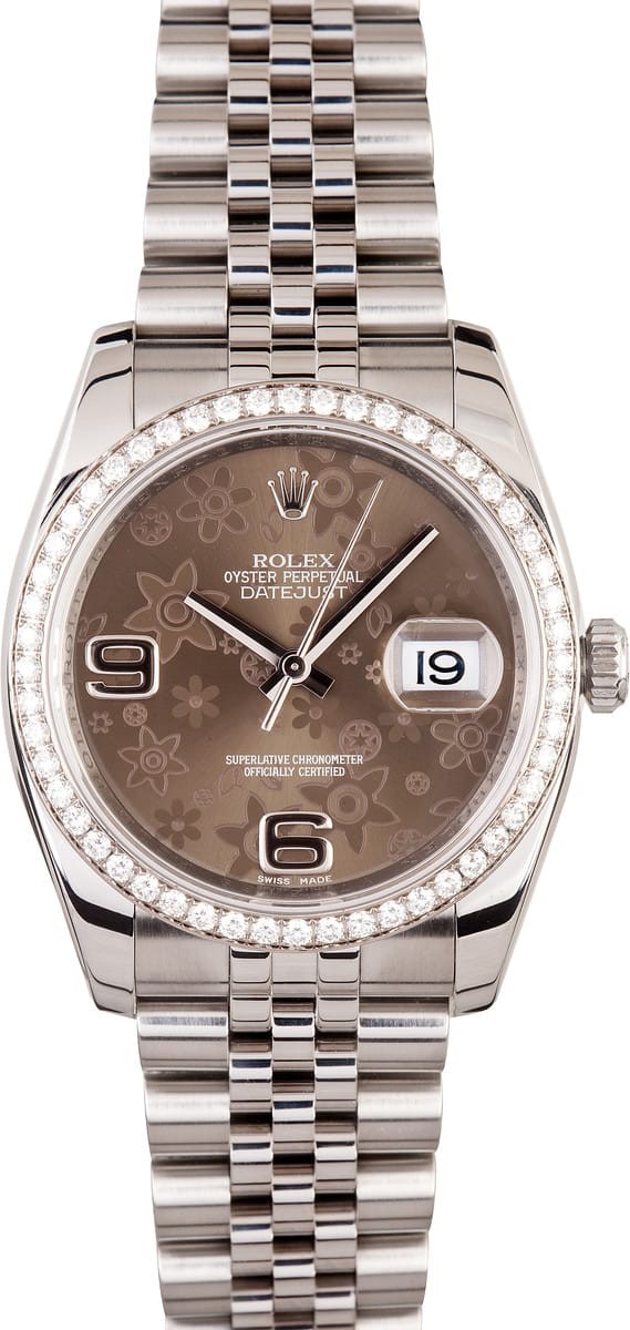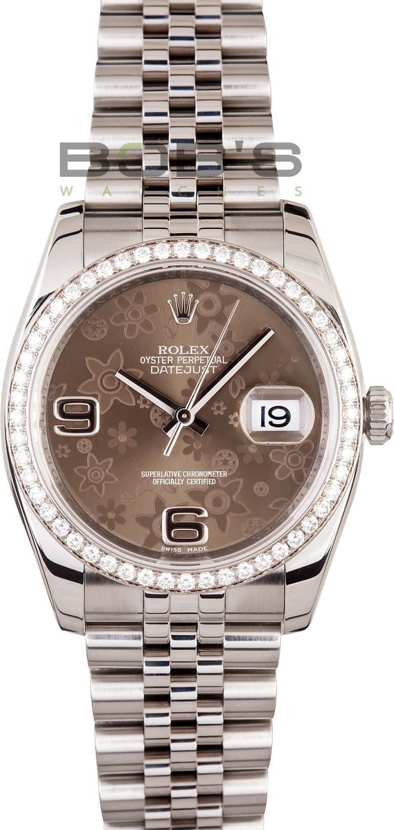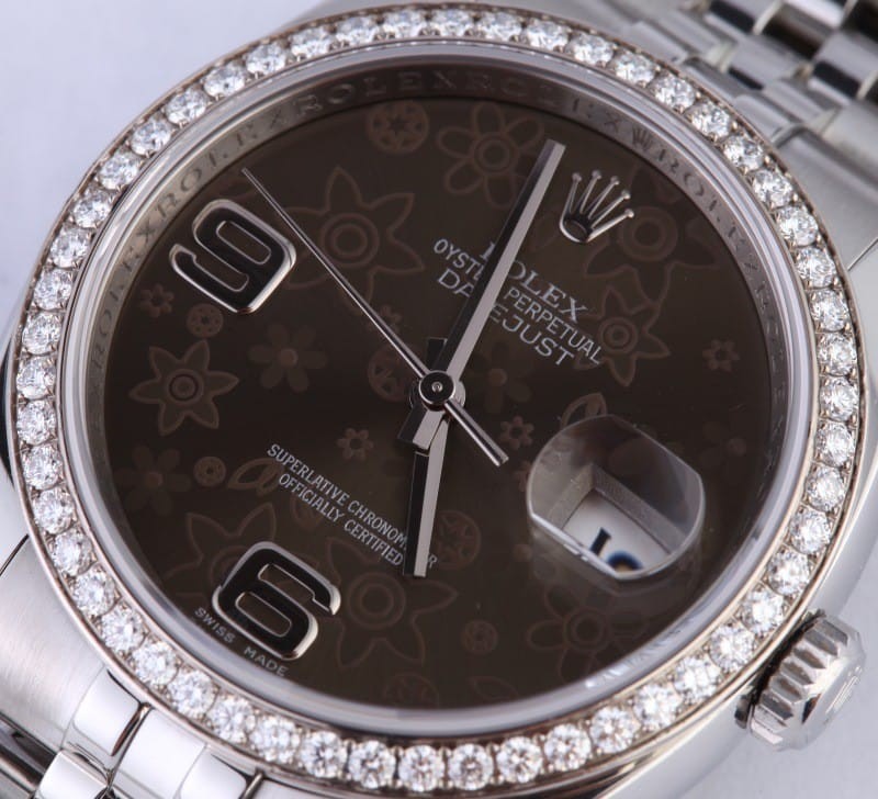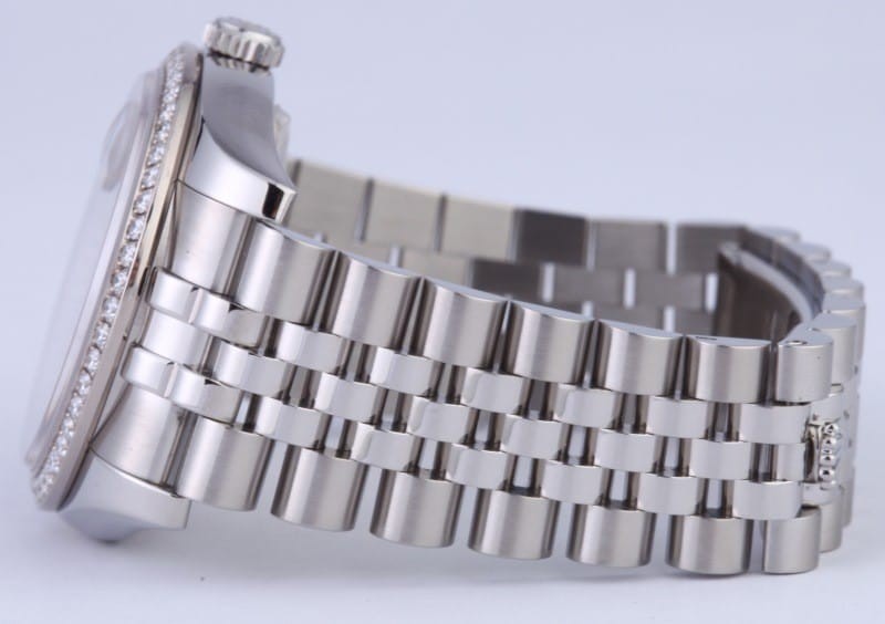 - Case: Stainless steel w/ Rolex 52 diamond bezel, 36mm, inner reflector ring engraved w/ serial number