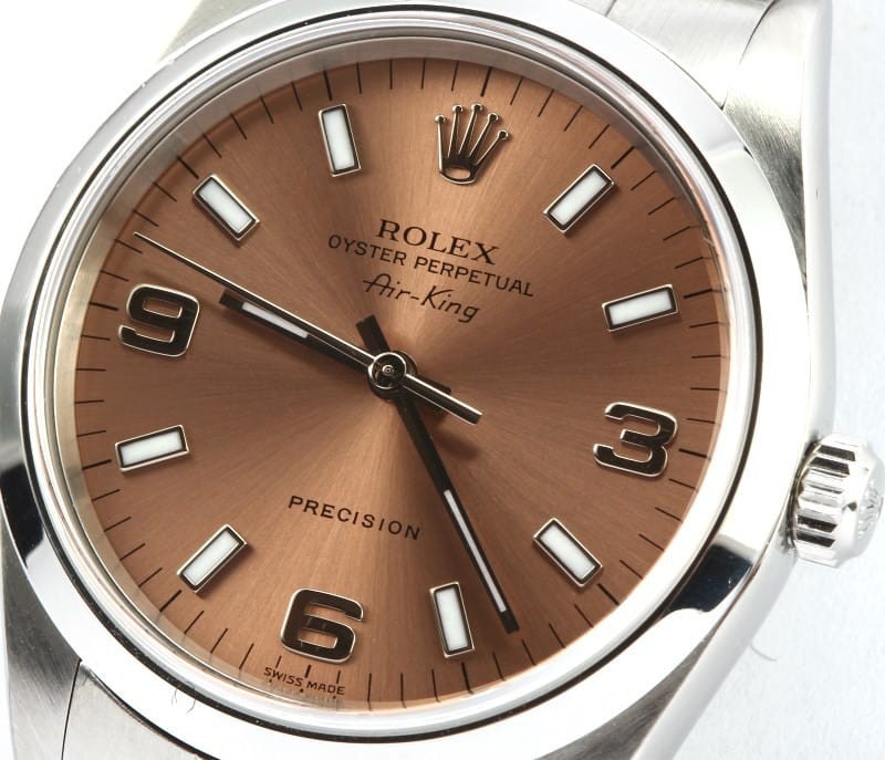 - Dial: Salmon w/ luminous hour markers and Arabic markers at 3, 6, 9