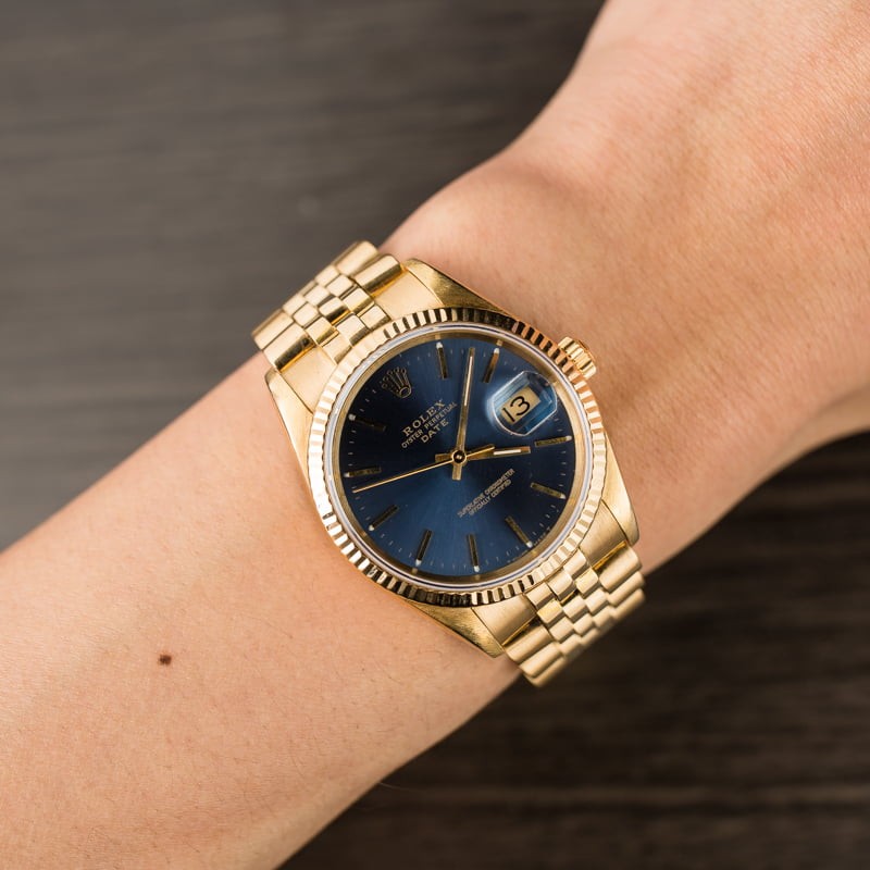 - Case: 18k yellow gold (34mm) w/ yellow gold fluted bezel