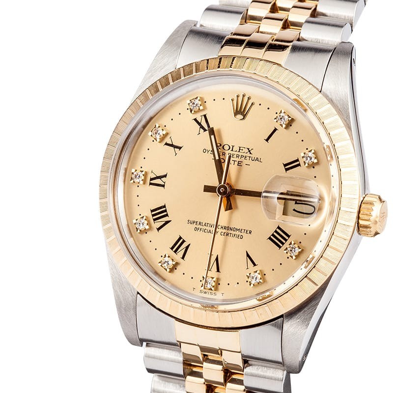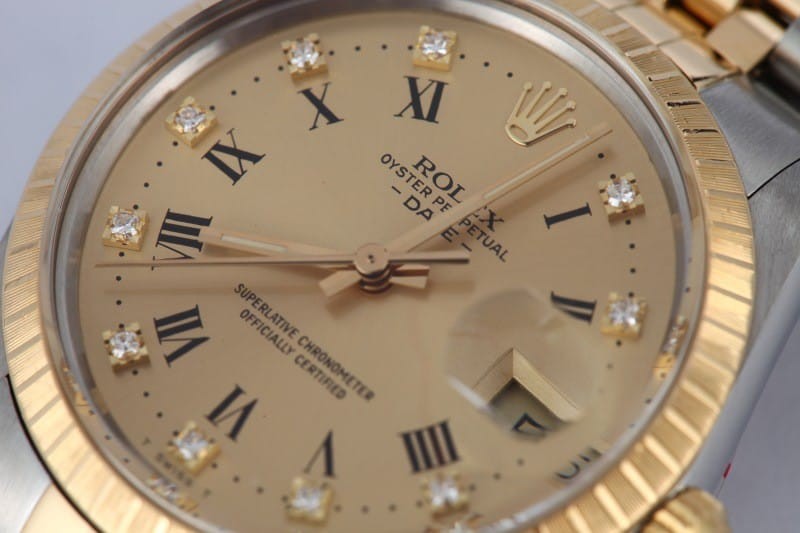 - Dial: Champagne Roman w/ diamonds at the hour markers