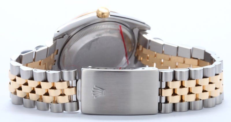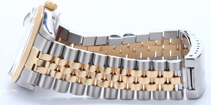 - Case: Stainless steel w/ yellow gold engine-turned bezel (34mm)