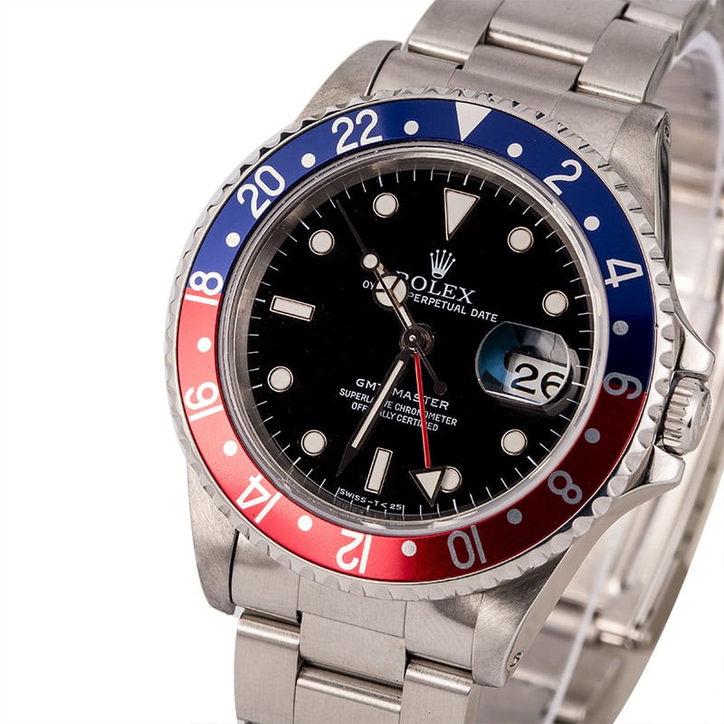 - Case: Stainless steel w/ "Pepsi" bezel insert (40mm)