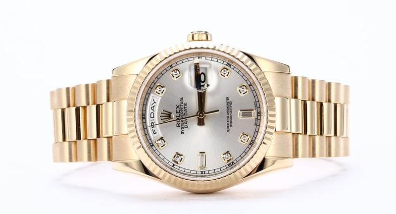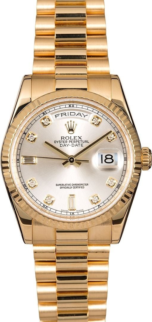 - Bracelet: 18k yellow Presidential w/ concealed Crownclasp