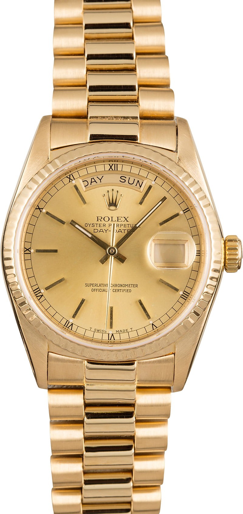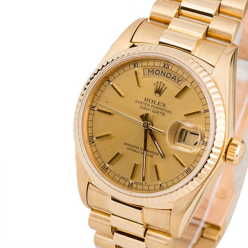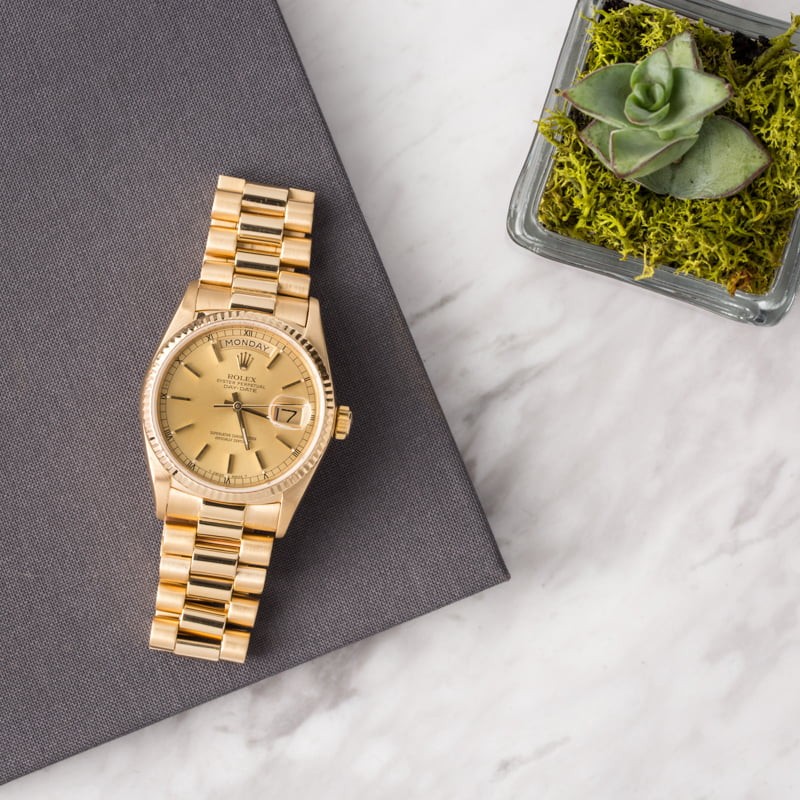 - Bracelet: 18K yellow gold Presidential w/ hidden clasp